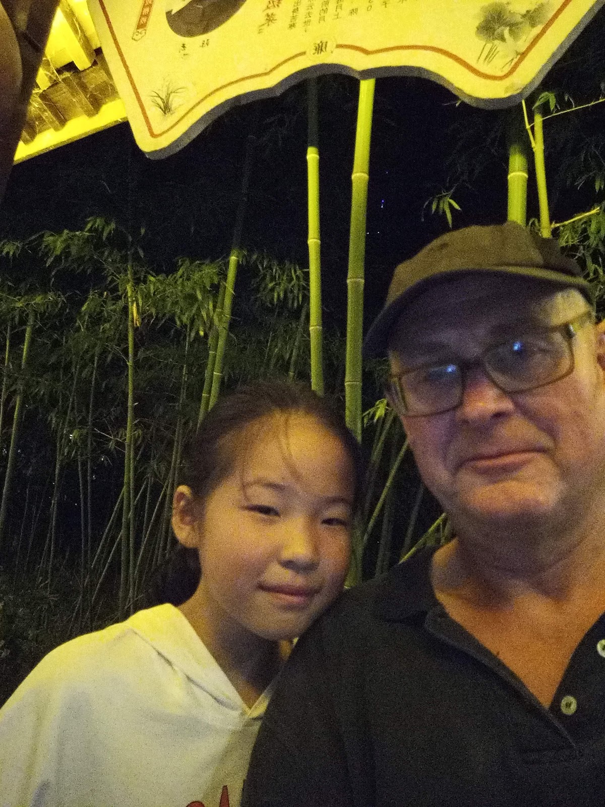 One night I went to the park and was watching the singing. I didn't join in because the it is getting close to the 70th celebrations in China and the 30th celebrations of the 'opening up' of China. People are getting paatriotic and the songs are getting difficult. Pepole are really passionate about China, and there is always a queue of those who wish to show their passion and who can also sing. I was sitting in the midst of this when a young girl sat beside me. She had found a foreigner and she was so excited! We talked a bit. She kept running off to her dad who was sat nearby. We chatted in a mix of Chinese and English but had to resort to some Google translate. I remembered I had a euro coin in my pocket. I gave it to her. She smiled and refused it, I gave it to her again, she looked so excited. She ran over to her dad. I went to sit by them and talked to dad, again in amixture of Chinese and English and Google translate. He turned out to be a teacher and a year head form another school. He invited me to visit. I told him that, due to working directives, he would have to arrange that with the Deputy at my school. He agreed. I told him that he must be so proud to have such a nice daughter. He smiled and agreed. We said goodbye and both headed off home.